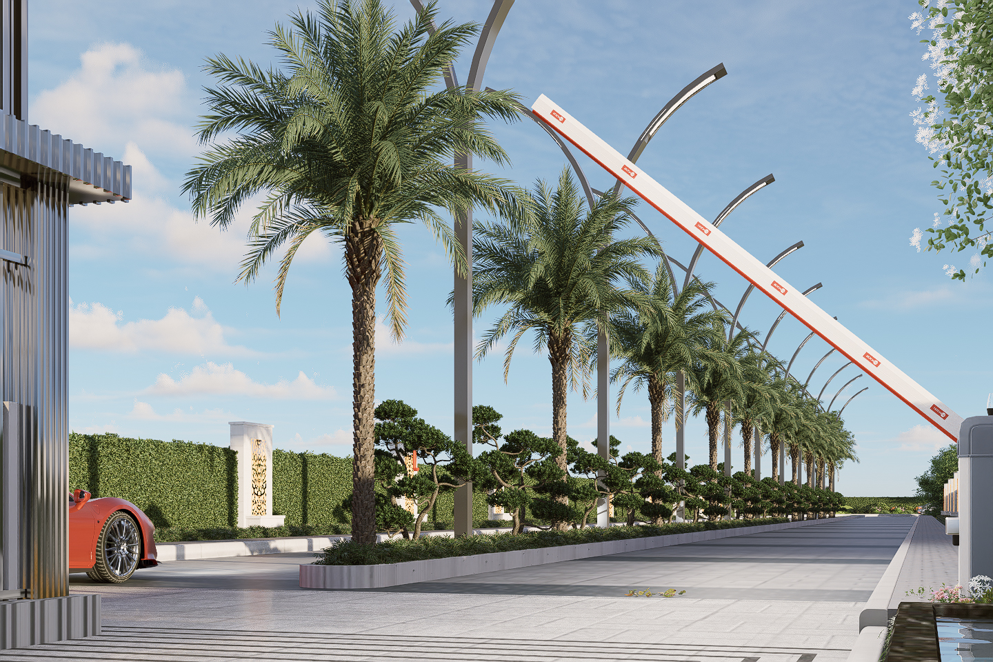 - Roads decorated with concrete pavers